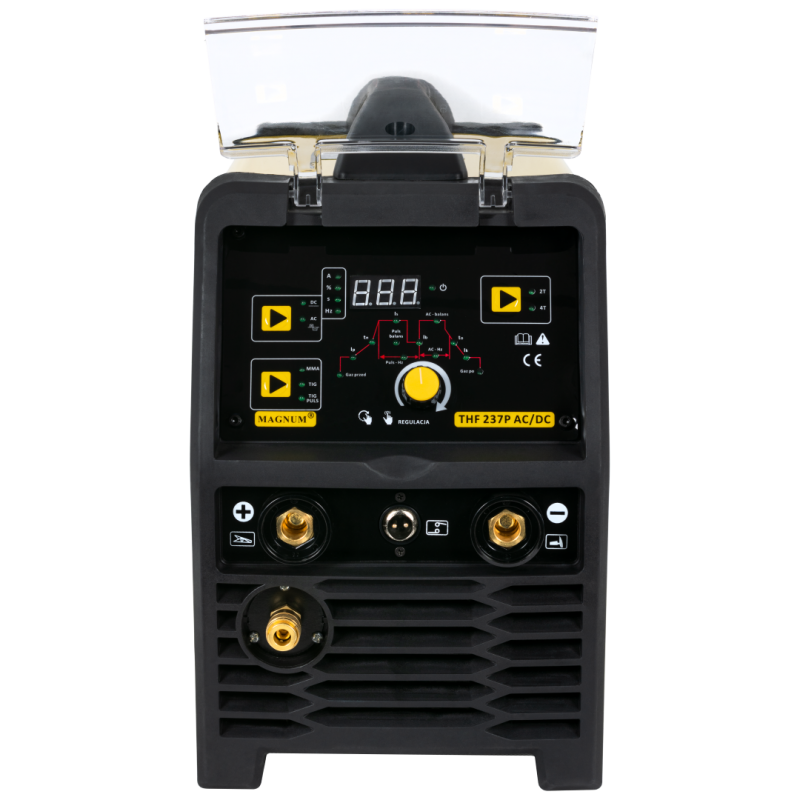 - Cyfrowy panel funkcyjny umożliwia precyzyjną kontrolę wszystkich najważniejszych parametrów spawania dla metod TIG AC/DC