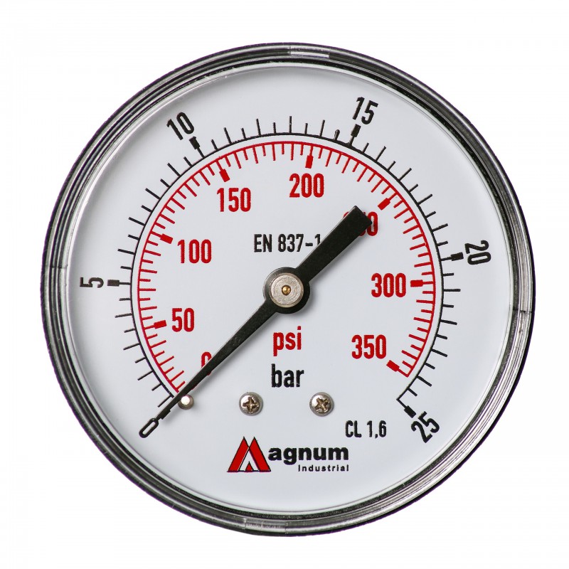 Magnum Manometr 63 mm do reduktorów 25 bar z przyłączem tylnym G1/4