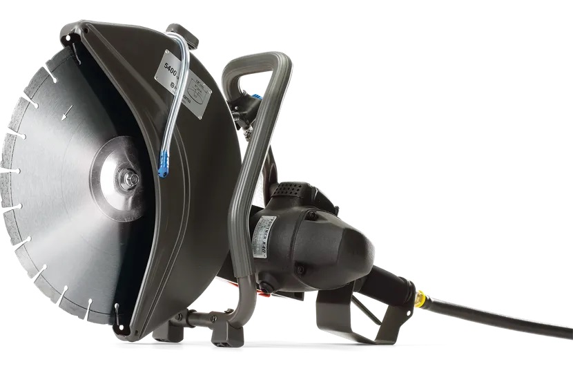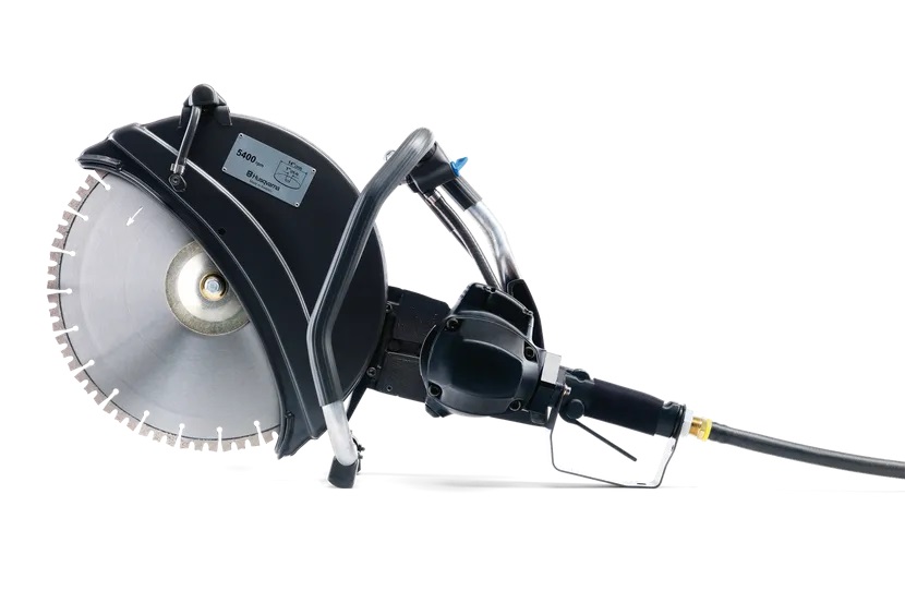 - Profesjonalna przecinarka zasilana powietrzem, do pracy w pomieszczeniach lub na terenach otwartych, gdzie prędkość wymiany powietrza jest mała, jak np. w rowach z przebiegającymi rurociągami, w głębokich wykopach pod fundamenty i w dokach portowych