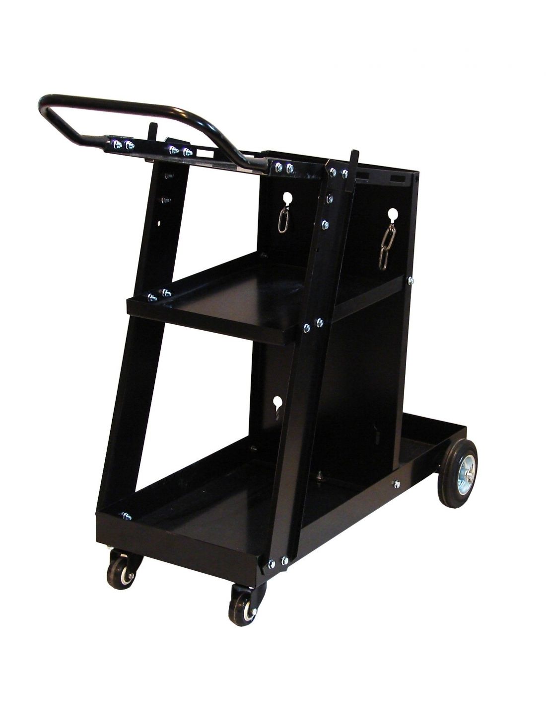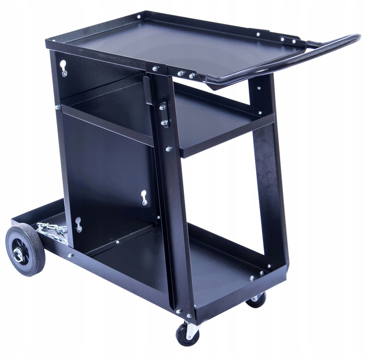 - Umiejscowiona pod kątem górna półka, na której można umieścić spawarkę, pozwoli na lepszą kontrolę, a dwie pozostałe zapewnią miejsce na potrzebny osprzęt i akcesoria