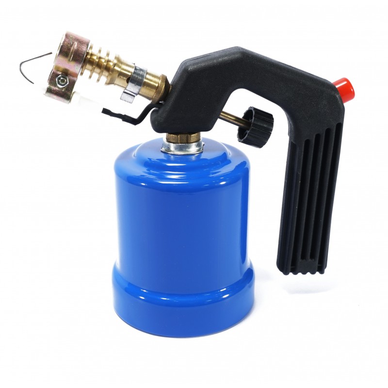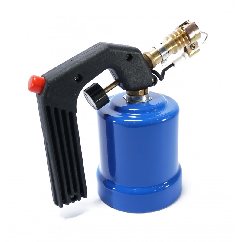 - Palnik posiada ergonomiczny uchwyt z zapalnikiem piezo i pokrętłem regulacji płomienia