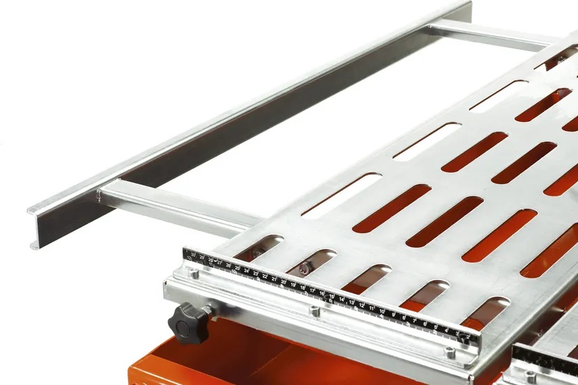 - Rozszerzenie blatu może służyć jako ogranicznik, regulujący cięcie